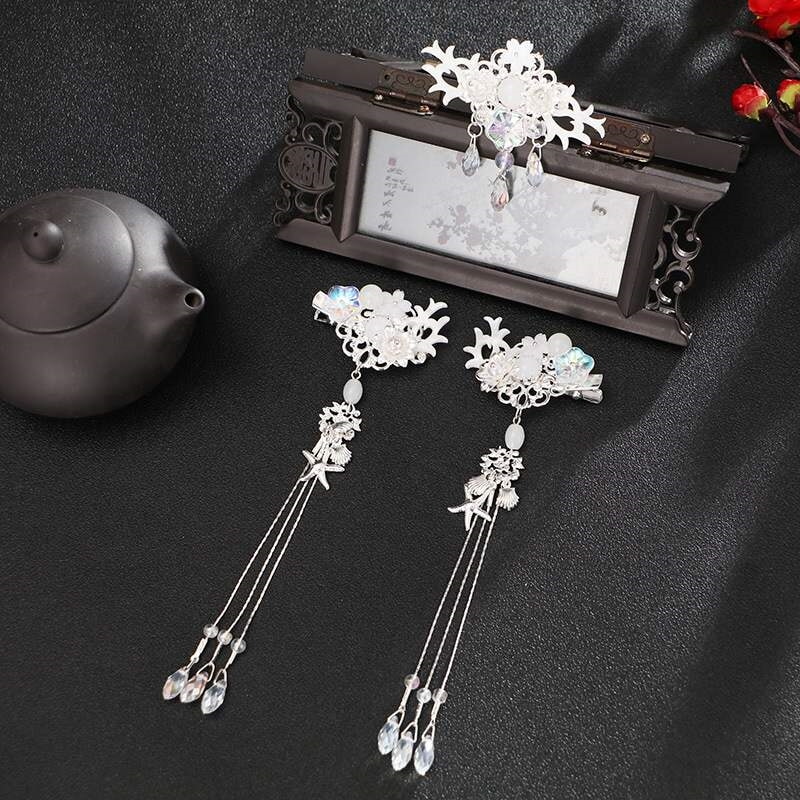 超仙髪飾り漢服髪飾りフルセット髪冠冠冠女フリンジ百合飾りステップ揺れ髪ネオジム時代亜楠