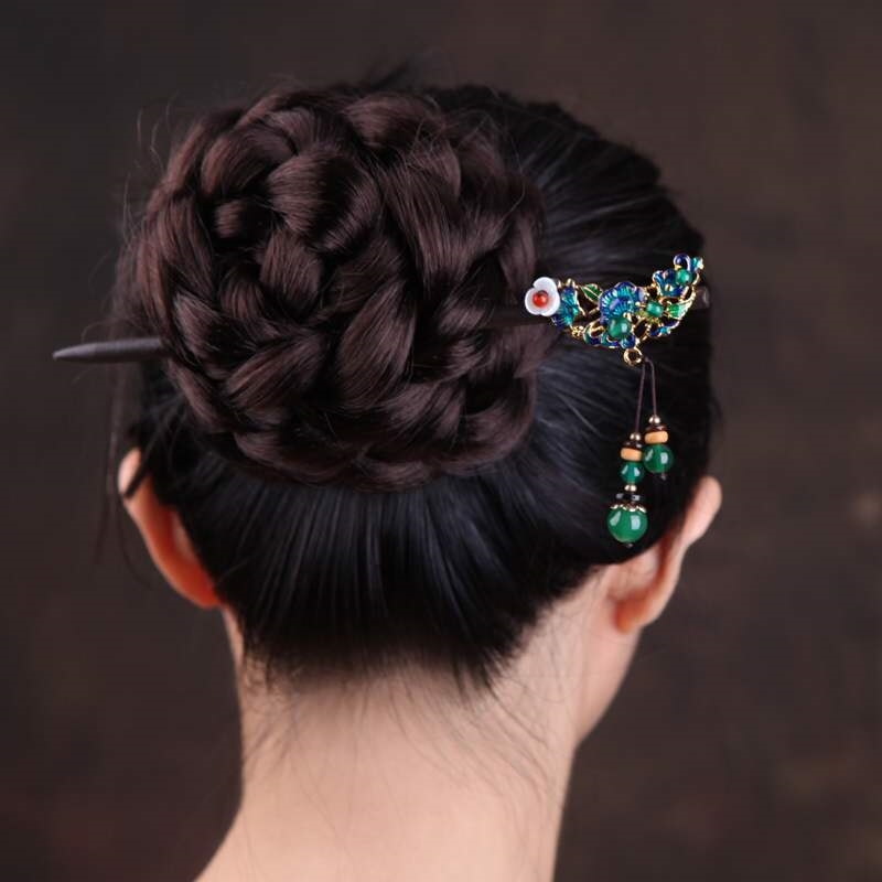 煙雨盤髪景泰藍花古典髪飾り女江南民族風かんざし歩振りかんざし女髪飾り