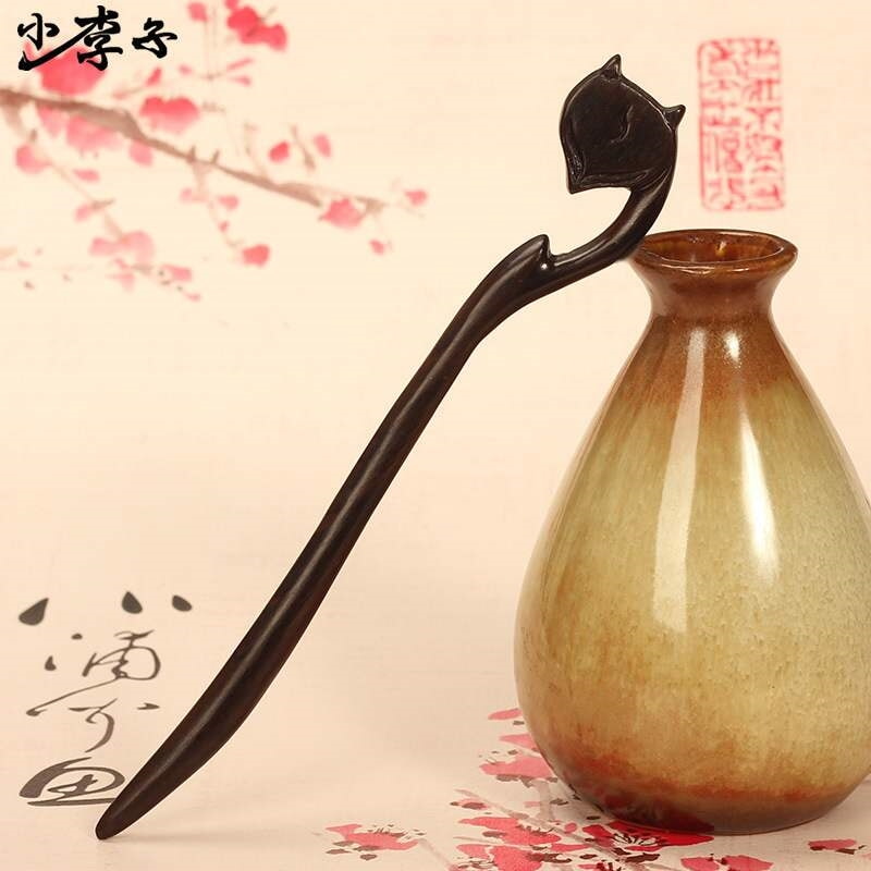 黒い糸の空にかんざし中国風古典白檀の頭飾り狐の木かんざしに髪飾り民族風