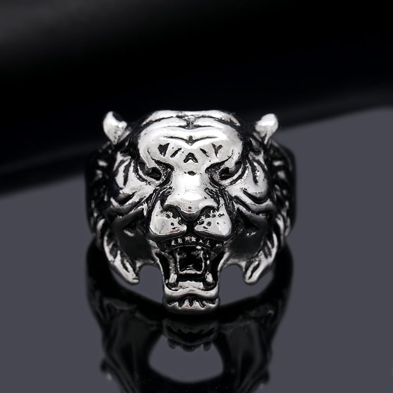 個性レトロタイガーヘッド横暴リングメンズ寅年オールマッチトレンディクールラージリングホワイトタイガーシルバーリングアクセサリー 指輪 銀