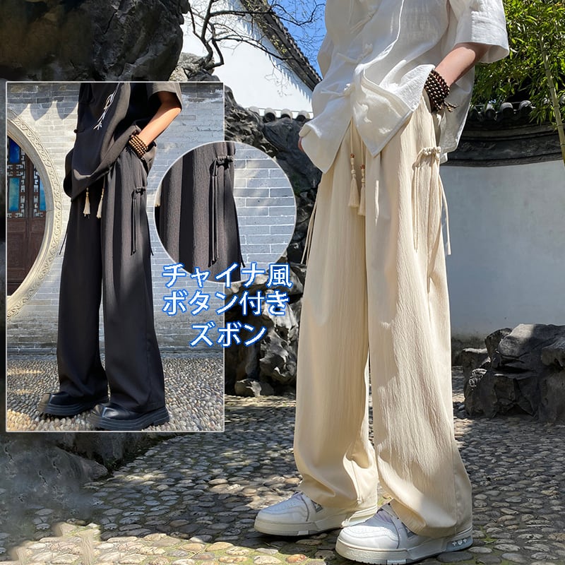2色 チャイナボタン ボトムス ズボン 男女兼用 メンズ 大きいサイズ 黒 シンプル