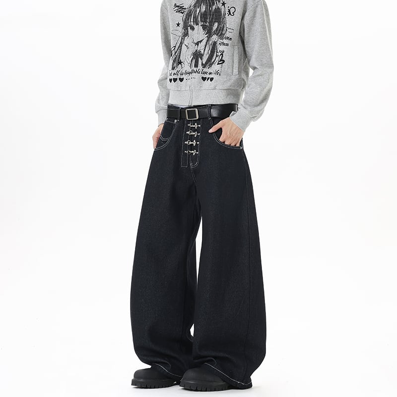 デニムパンツ カジュアルパンツ ボトムス 男女兼用 メンズ 金属ボタン かっこいい