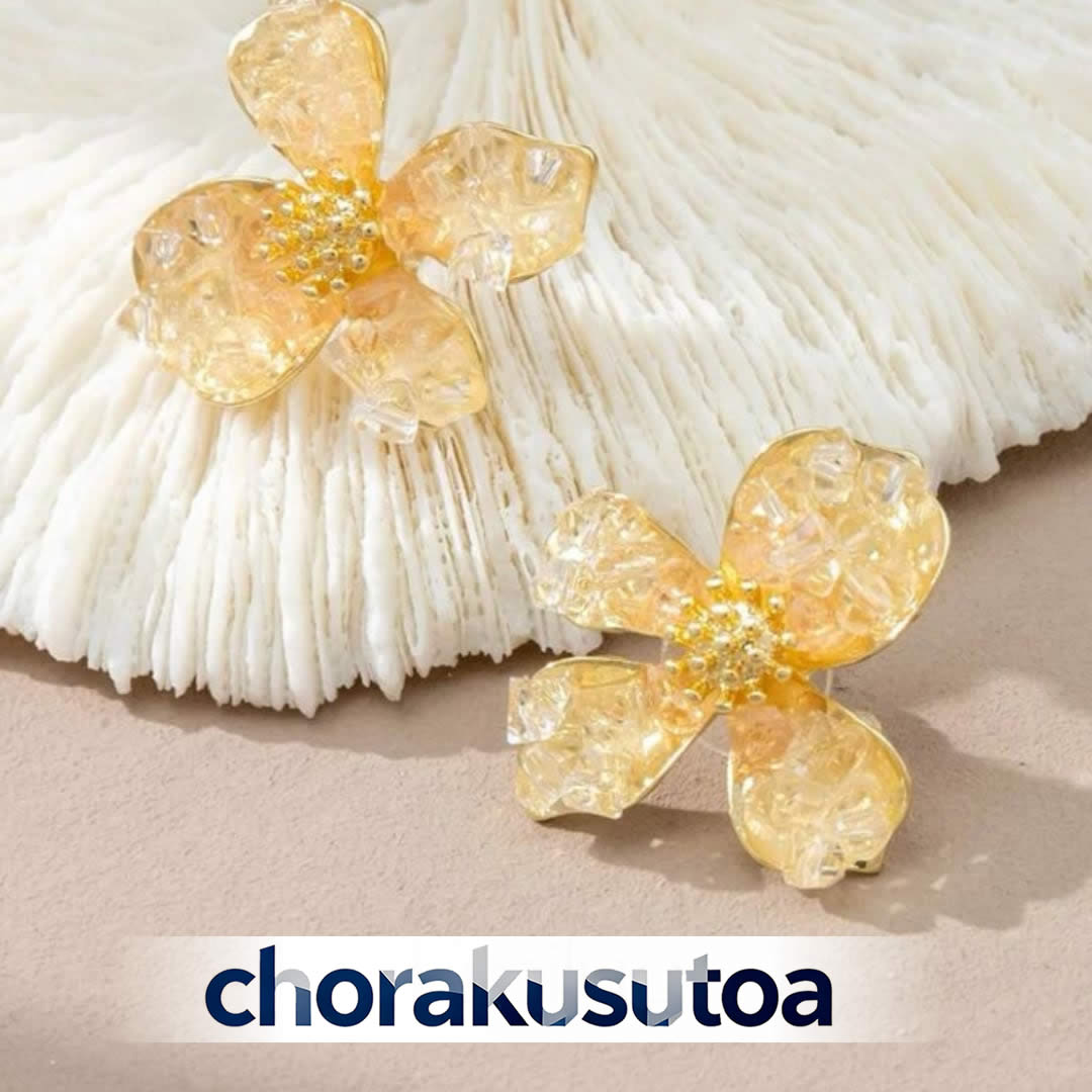 ガラスビジューで敷き詰められた花びらが涼しげな印象を与えてくれるピアスです。素材:亜鉛合金 ガラスビジュー※ 撮影時のライティング、PCやスマートフォンなどお使いのモニター環境により、商品画像の色味や質感が実際の商品と異なって見える場合がございます。※ポスト部分はsilver925素材を利用しております。大変柔らかい素材のため曲がりやすいですが、指で押し戻してご利用頂くことが可能です。