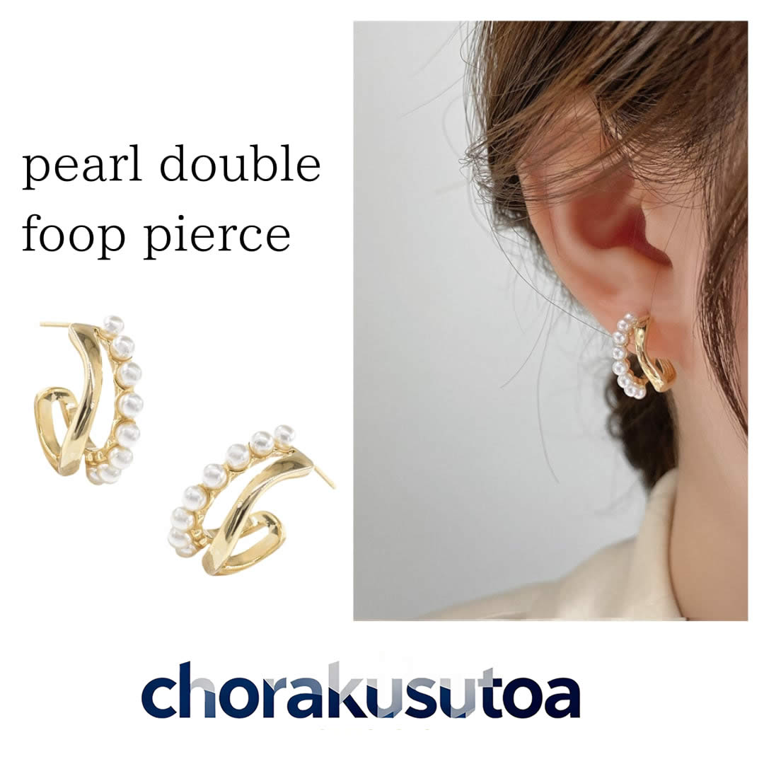 2つのフープピアスを重ね付けしているようなデザイン。※ 撮影時のライティング、PCやスマートフォンなどお使いのモニター環境により、商品画像の色味や質感が実際の商品と異なって見える場合がございます。