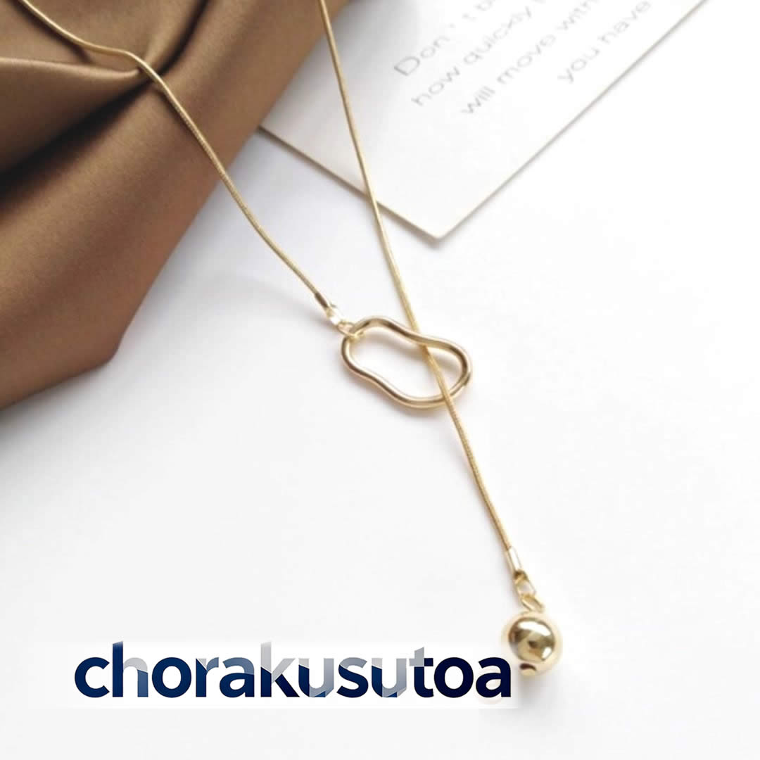 どんなスタイルにも合わせやすいデザインのラリエットネックレス。上品さ、大人っぽさを感じさせるゴールドカラー。※ 撮影時のライティング、PCやスマートフォンなどお使いのモニター環境により、商品画像の色味や質感が実際の商品と異なって見える場合がございます。