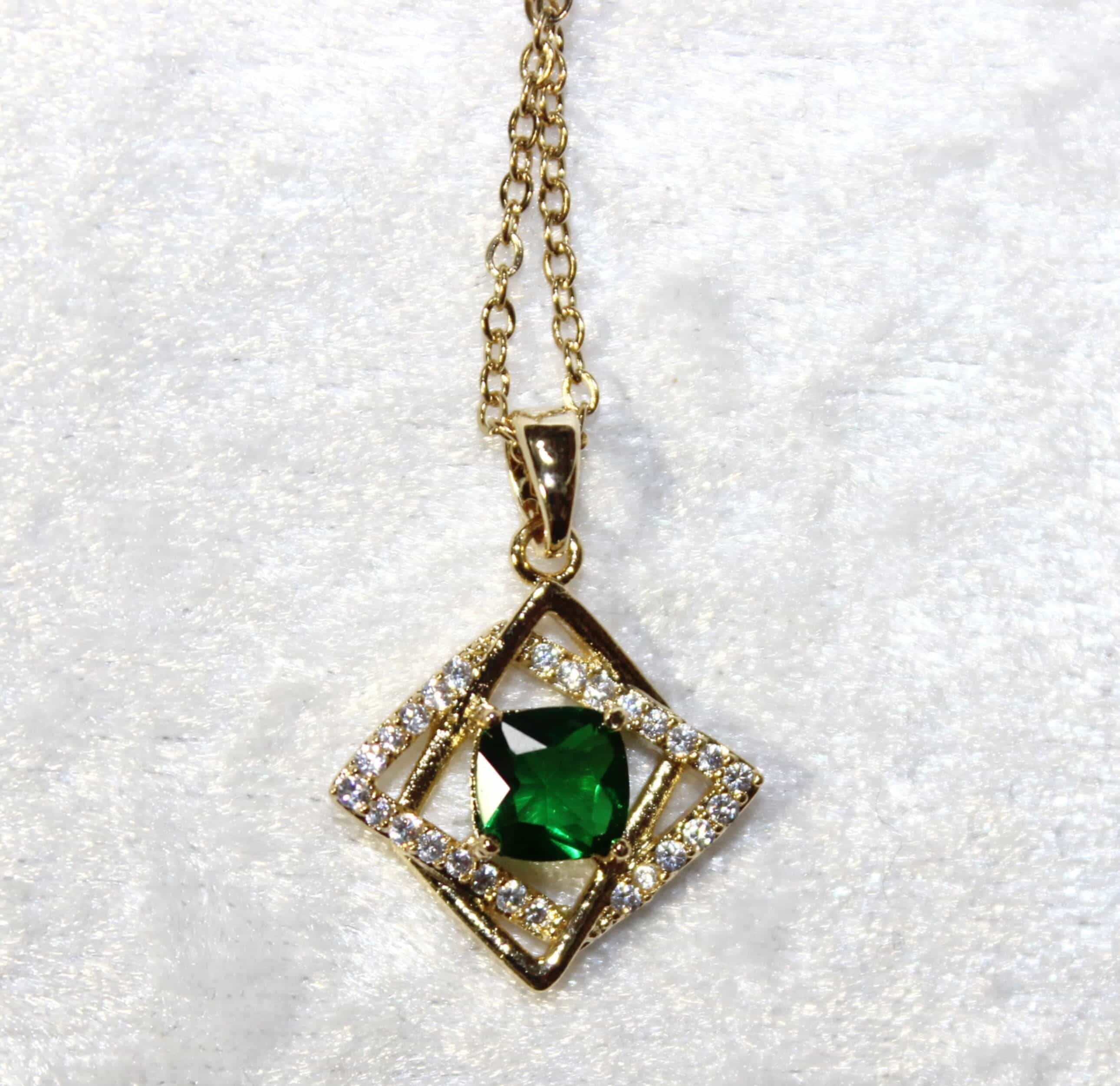 まるで深い森の中にいるかのような、フォレストグリーンのネックレスです。チェーンの長さは、40cm+アジャスター5cm=45cmです。