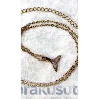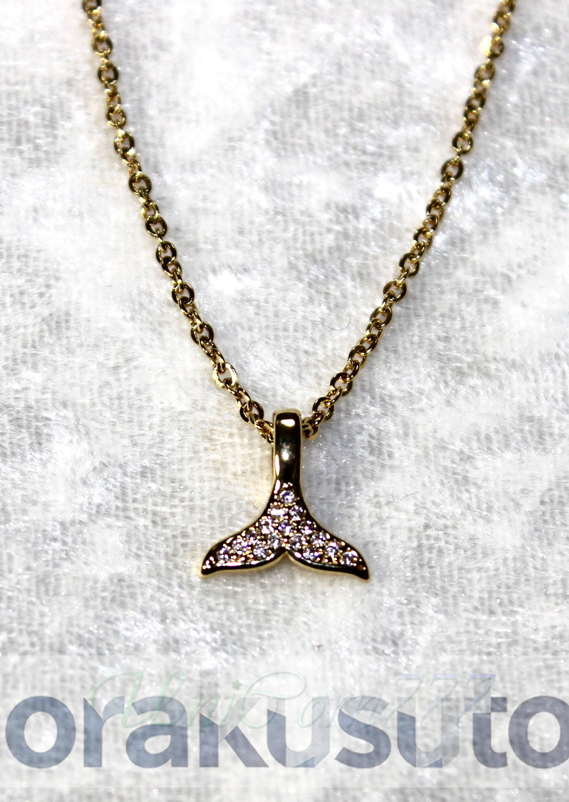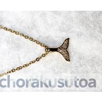 クジラのしっぽをモチーフにしたネックレスです。クジラは、この世で一番大きな生物ですが、滅多に出会える事はありません。なので、昔から船乗り達やダイバーの間では、クジラに出逢うと幸運の印であると考えられてきました。クジラを見に行くツァーのことを、「ホエールウォッチングに行く」などと言いますが、運よくクジラを発見できると、クジラは、息継ぎが終わって潜水する直前に、しっぽを海面上に見せる事があります。これを、「フルークアップ」と言い、観光客はこの時、シャッター押しまくりだったりするのです(笑)このネックレスを身につけることで、海の広がりや自由な気持ちを感じることができるかもしれません。クジラは大海原を自由自在に泳ぎ回る姿が魅力であり、そのイメージを身につけることで、日常の中で、貴女も自由な気分を感じ取れることでしょう。