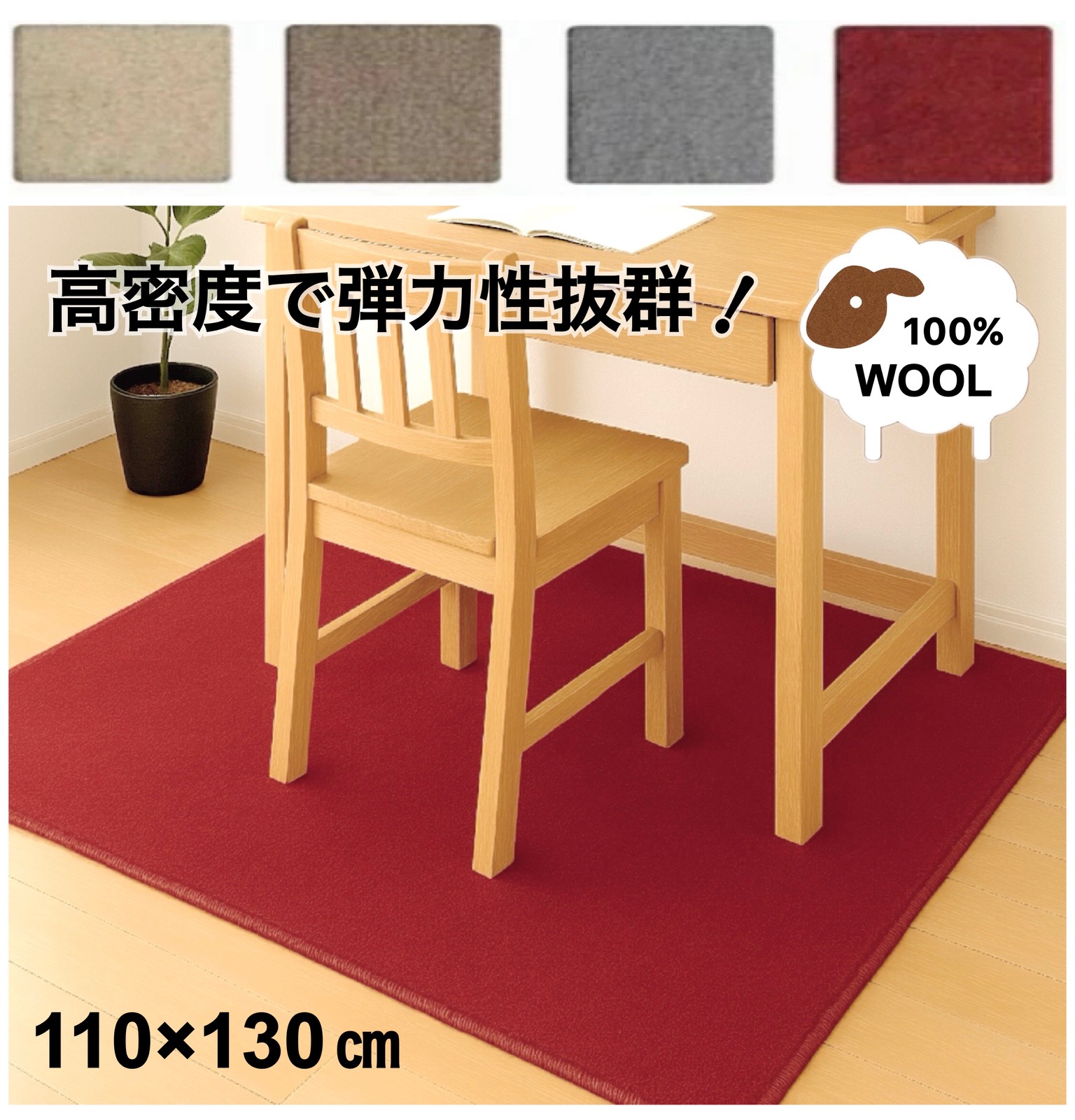 デスクカーペット 110×130cm 学習机用 無地 女の子 男の子 防炎 遮音 防虫 制電 防ダニ 約110×130 日本製 ウール 新毛 レッド アドニス 送料無料 全厚約11.5mm