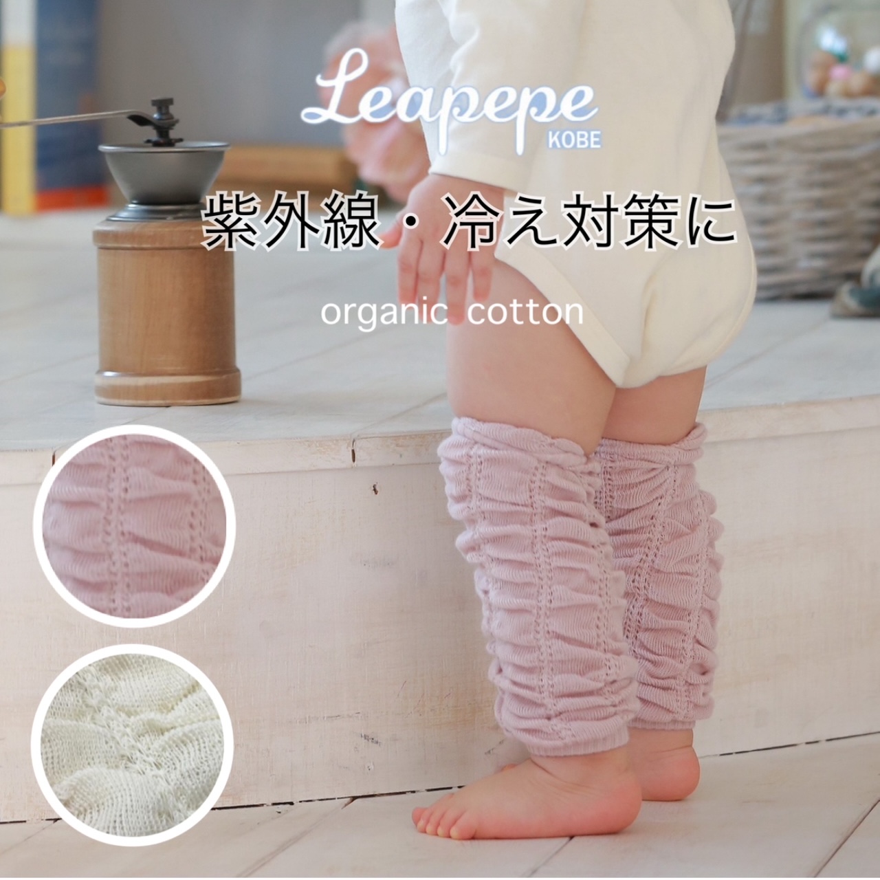 ・赤ちゃんの肌にもとっても優しいオーガニックコットンで編んだベビー用レッグウォーマー