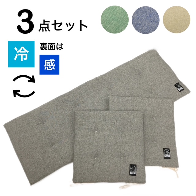 シートクッション 3点セット 車 後部座席 ソファー 無地 両面使える 裏はひんやり冷感 グレー ベージュ ブルー グリーン 約43×43cm 約43×120cm 送料無料