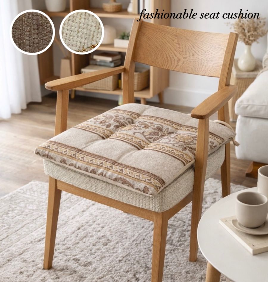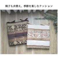 シートクッション ひも付き 車 いす用 エレガント 上品 シェニール織り 花柄 ベージュ ブラウン 43×43cm