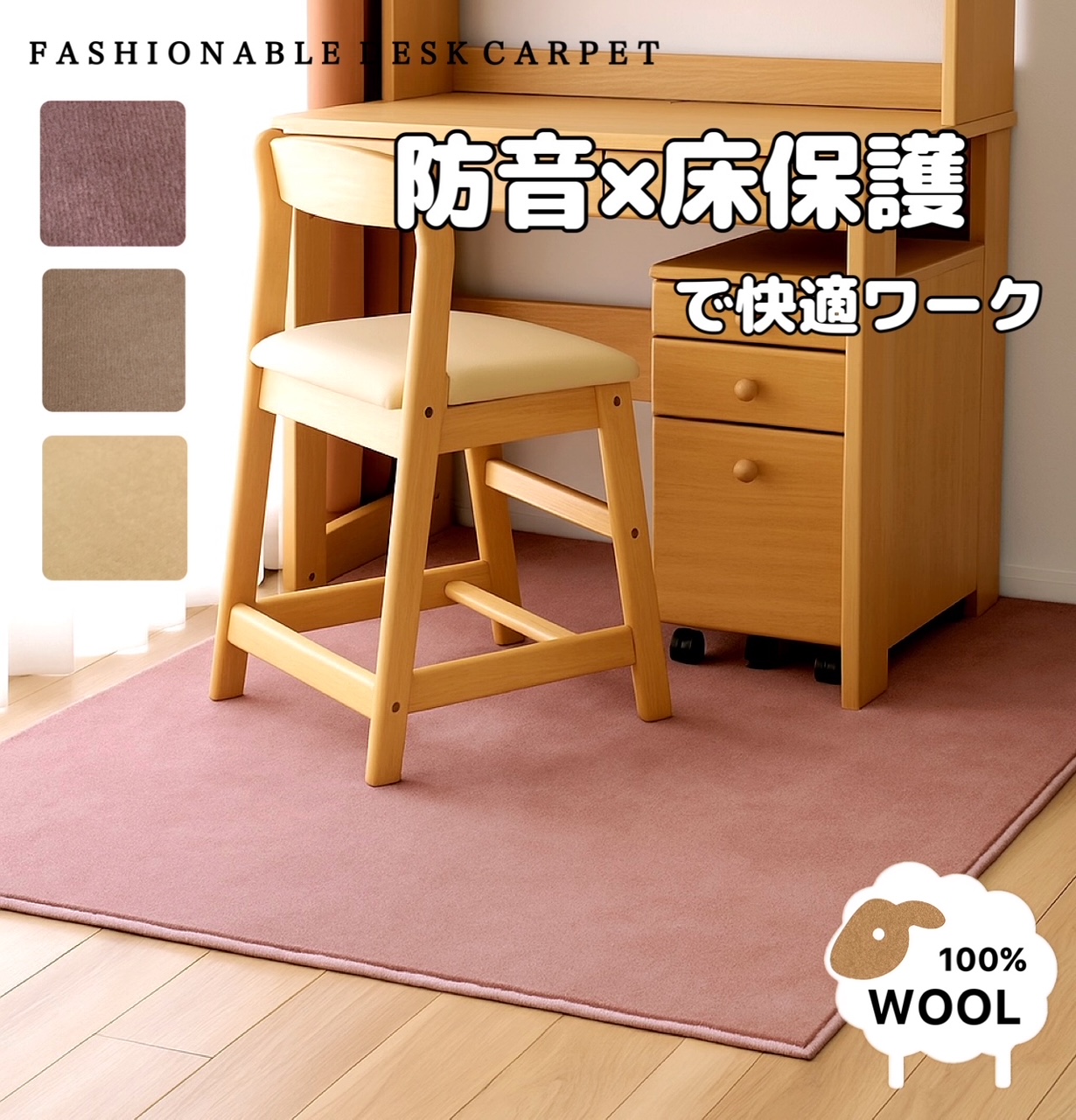 デスクカーペット 110×130cm 学習机用 女の子 男の子 無地 防炎 制電 遮音 防虫 遊び毛がでにくい ウール カットパイル 約110×130 日本製 送料無料 全厚約9mm