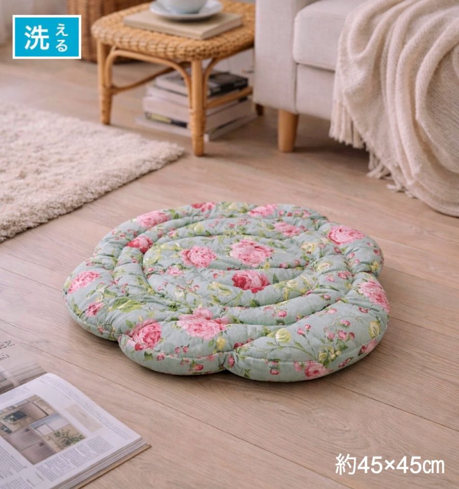 シートクッション 座布団 花型 座布団 チェアパッド 綿 グリーン 上品 おしゃれ 手洗いOK 東京ロームアセット 在庫限り