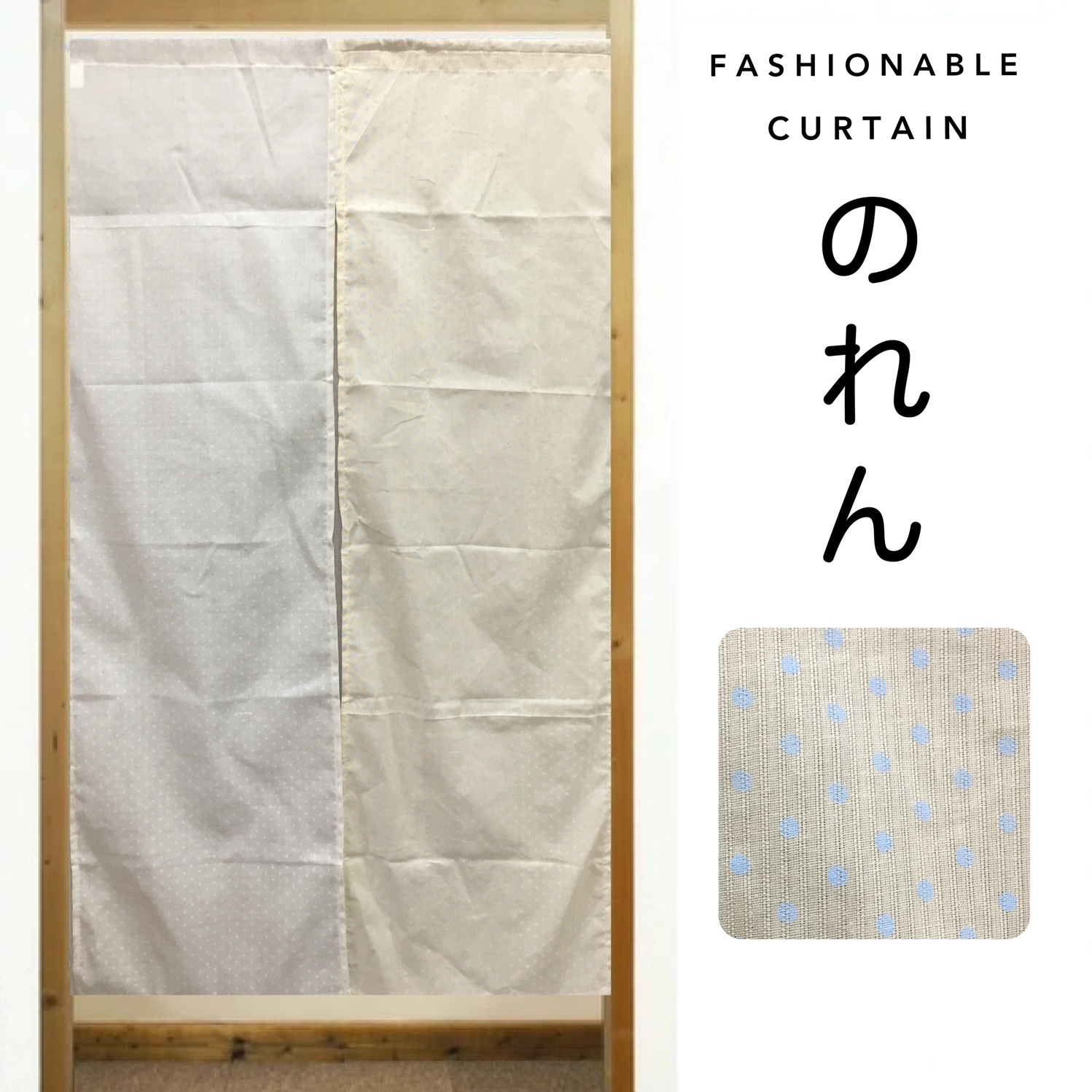 のれん ロング おしゃれ 目隠しカーテン 間仕切り 水玉 ドット ベージュ 水色 透け感あり 約85×150 送料無料