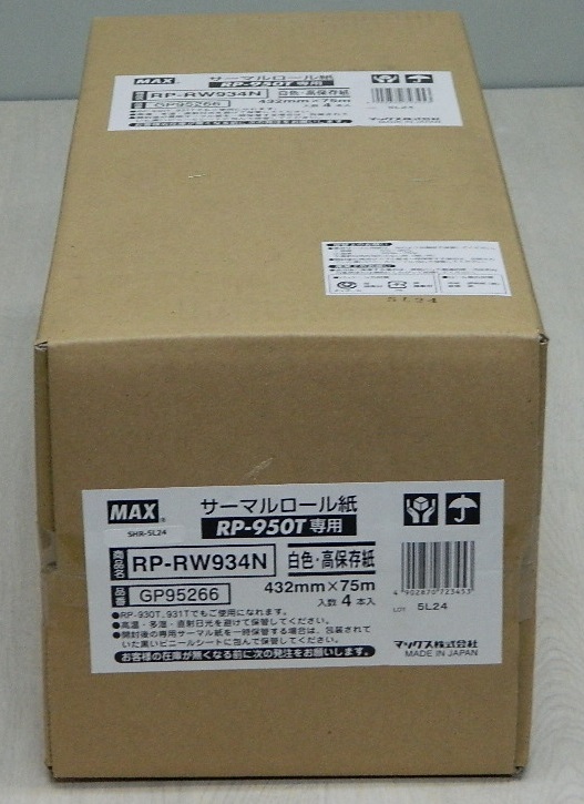 純正品 スーパーホワイト感熱紙 432mm幅 RP-RW934N 432mm×75m×4本