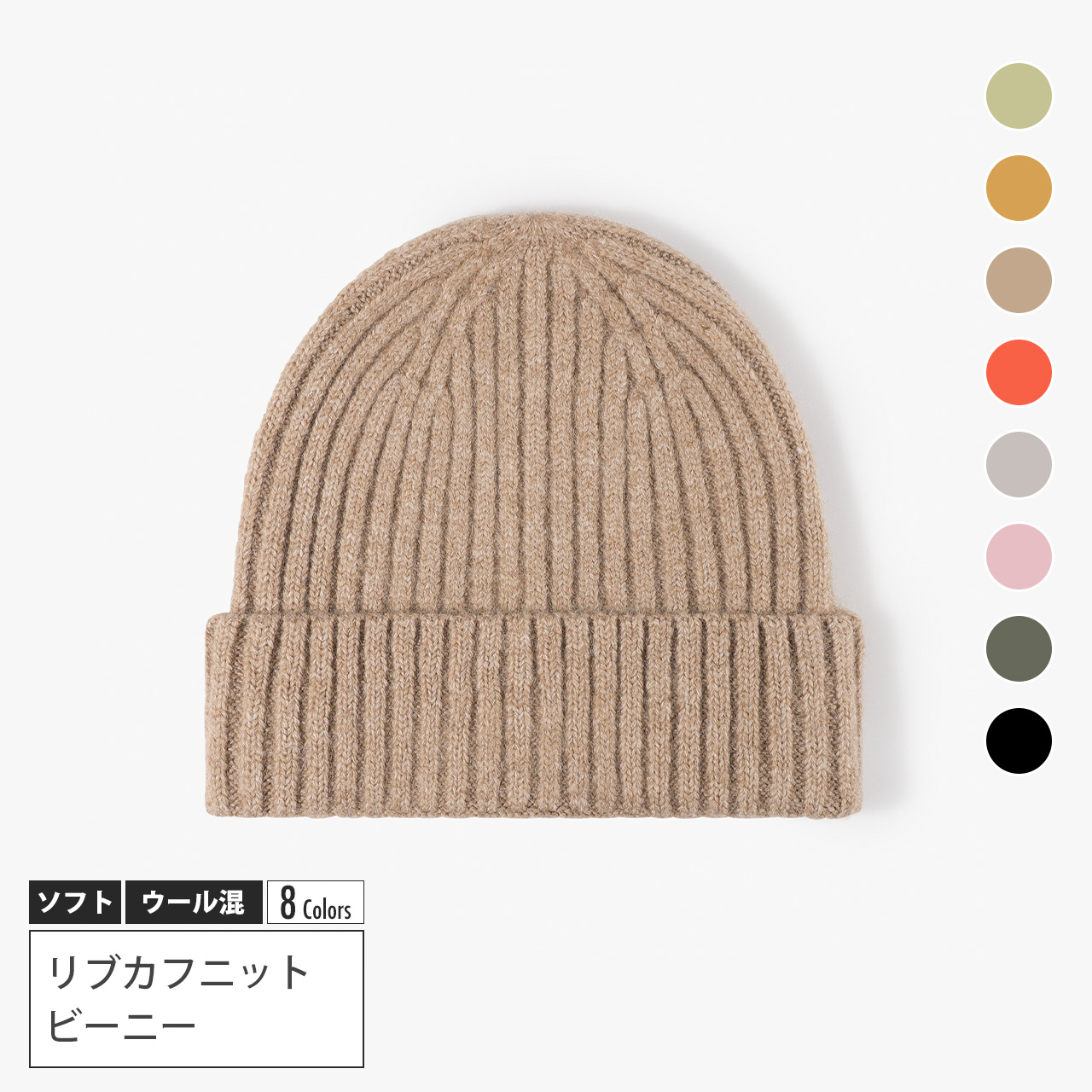 ・リブ編みカフ仕様で安定感のある被り心地