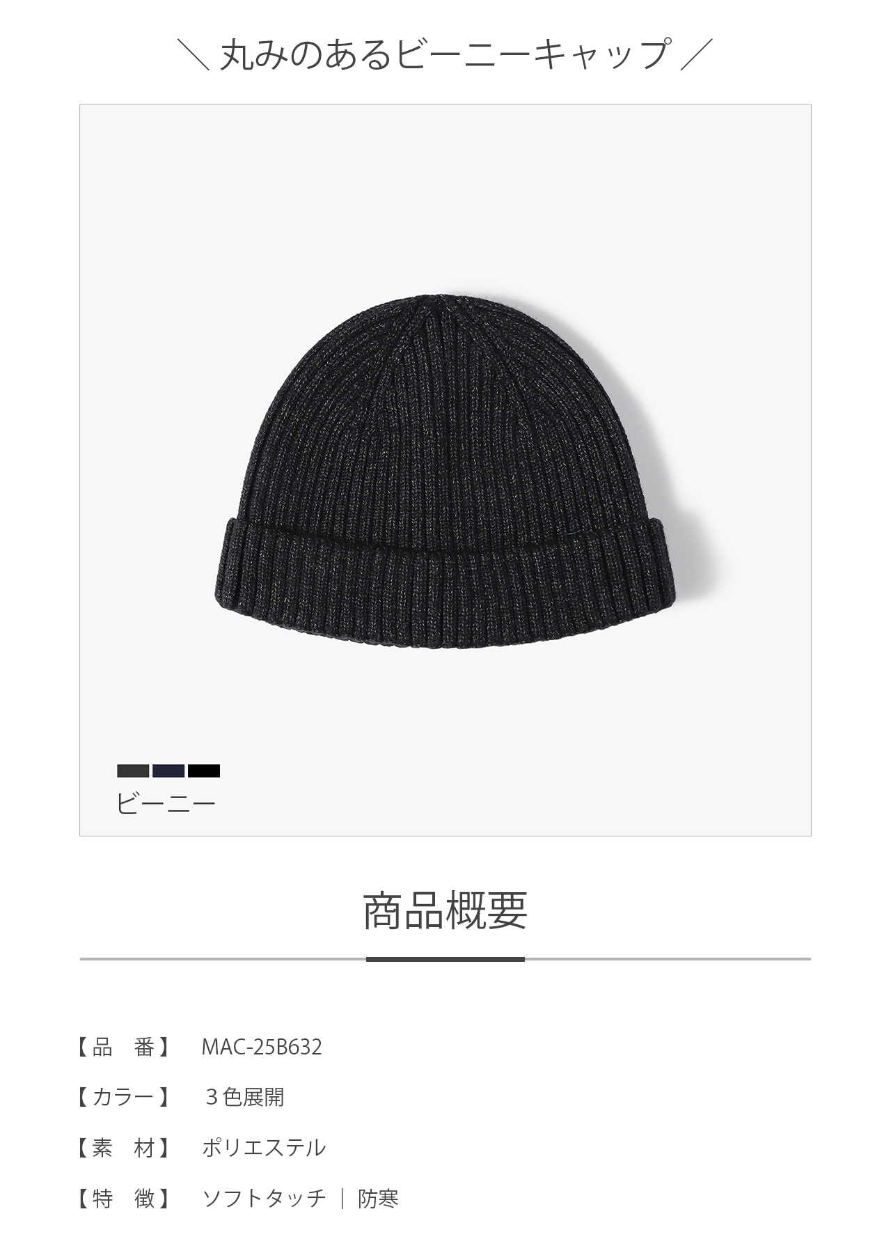 寒い季節に欠かせない、シンプルで使いやすい定番ニットキャップ。