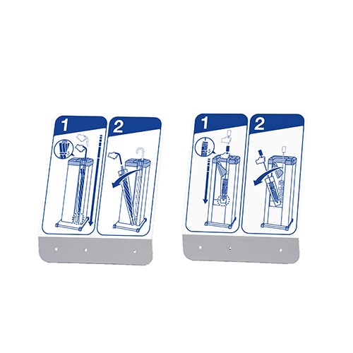 傘ポンの使用方法が絵で示されたボードです。