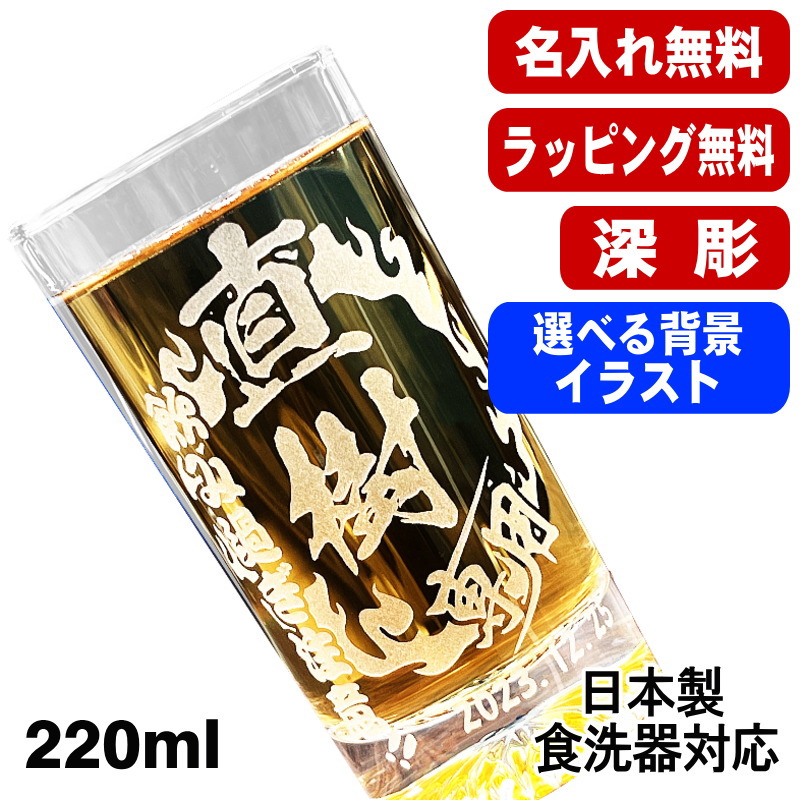 グラスには当店自慢の深掘りオリジナル名入れ彫刻を施します。