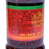 いつもの料理にちょい足しで激ウマ辛!ピーナッツ入り辣椒油辣椒とは中国貴州省の陶華碧氏こだわりの伝統的な具入りラー油です。本商品はピーナッツ入りラー油です。ピーナッツを香ばしく焼き上げ、唐辛子の香り・辛味を存分に引き出した人気の逸品です。元祖食べるラー油として日本でも大人気です!炒め物などの調理にはもちろん、ご飯に乗せたり餃子や麺類の辛味付けにご使用下さい。