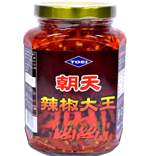 食べるラー油ブームで一躍有名になった朝天辣椒。唐辛子のオイル付けです。炒め物などの辛味調味料や鍋、餃子の漬けだれ、もちろんそのままご飯に乗せて食べても、激辛好きはお箸が止まりません。激辛注意です!