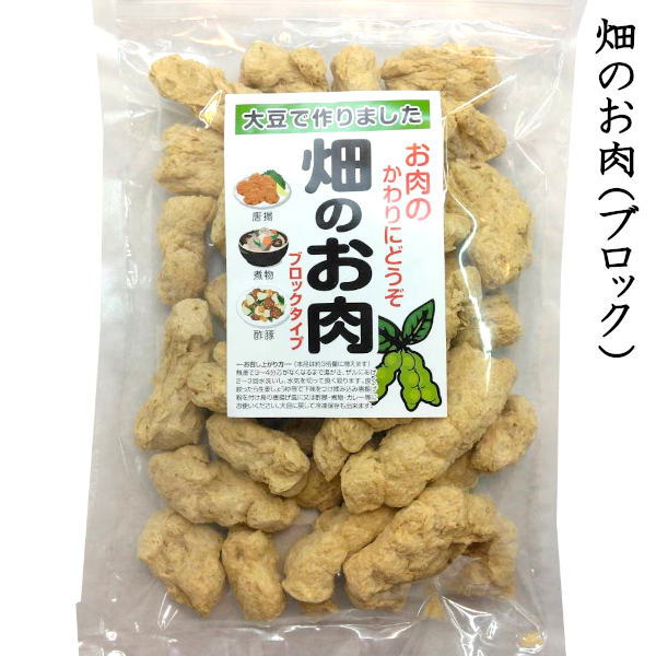 ビーガンやベジタリアン、健康を気にする方やダイエット中の方に人気の大豆でできた代替肉、【畑のお肉(ブロック)】です。