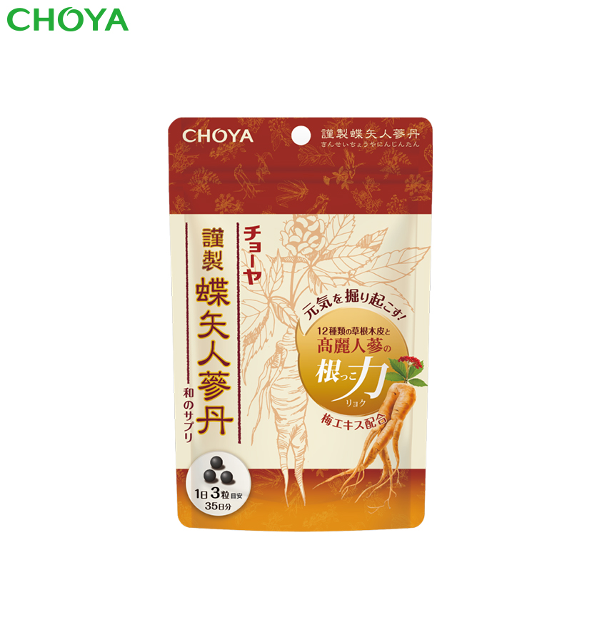 高麗人参と12種類の草根木皮をギュッと。 長年にわたるチョーヤのハーブ研究から誕生した、ロングセラー商品「蝶矢人参酒」。 『人参丹』は蝶矢人参酒1本に使われている高麗人参とショウガ、ハトムギ、ウコン、ナツメなど 全12種類の草根木皮を1袋にギュギュッと配合。 チョーヤのサプリならでは!梅エキスも加えた「和のサプリメント」です。