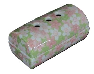 美濃焼 横置き筒型香炉 筒型香炉彩器 満開桜 緑 お線香 浄土真宗 真宗 お香