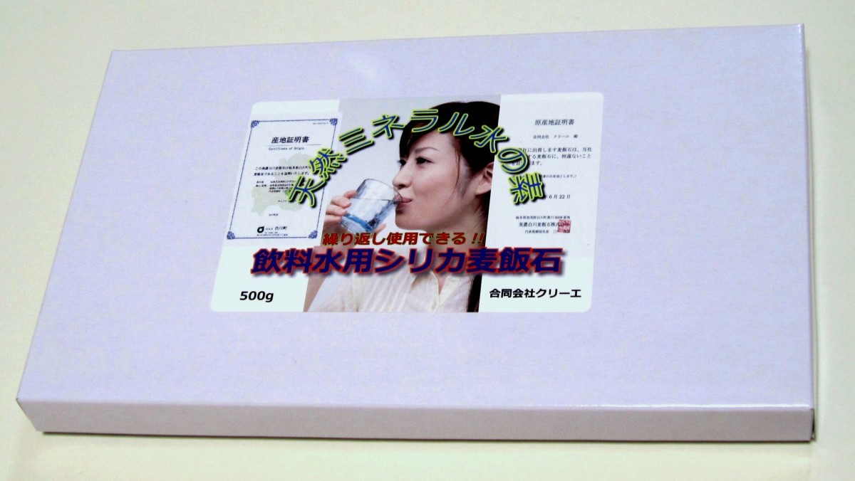 日本原産・美濃白川採掘証明書・ 天然麦飯石をペトボトルや水差しに入れてシリカ水を作ります。