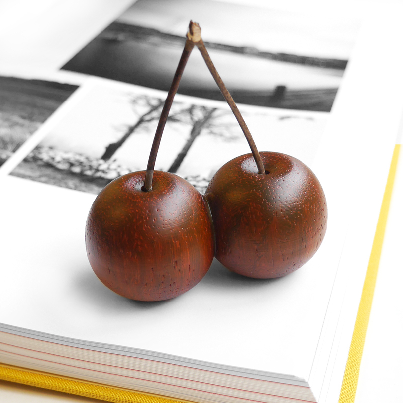 さくらんぼ ペーパーウェイト 手のひらサイズ オブジェ 木製 ハンドメイド 文鎮 パドック 置物 おしゃれ 天然木 チェリー 日本製