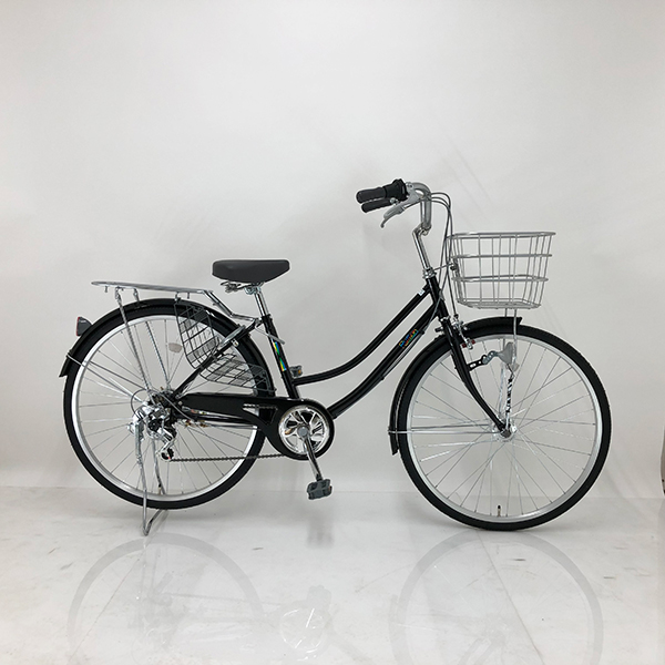 【30%OFF】新車 自転車 シティサイクル ラフィアン 26インチ 外装6段ギア LEDオートライト カゴ付き