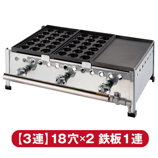 3連ガス器具/鉄板1連/18穴たこプレート2枚