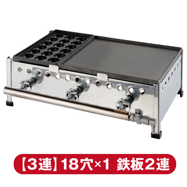 3連ガス器具/鉄板2連/18穴たこプレート1枚