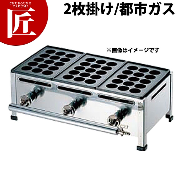 AKS 業務用 たこ焼き器 ガス式たこ焼き器 15穴用 2枚掛セット 都市ガス