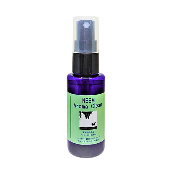アーユルヴェーダ伝承「ニームエキス」配合。ノミ・ダニからペットを守り、雑菌や汚れを落とす『ニームアロマクリーン』。本物のアロマの香りをペットに使ってほしいから世界規模のオーガニック機関「エコサート」認定のオーガニックアロマオイルを使用。目の周りやお口の周りにも使える安心安全のアロマスプレーです。清涼感のあるペパーミントの香り。興奮を鎮めたい時におすすめの香り。痒みがある皮膚や、ゲージなどのお掃除にも、効果的にお使いいただけます。