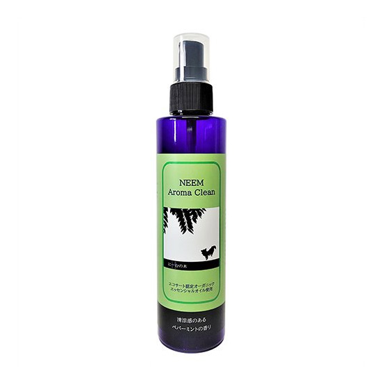 アーユルヴェーダ伝承「ニームエキス」配合。ノミ・ダニからペットを守り、雑菌や汚れを落とす『ニームアロマクリーン』。本物のアロマの香りをペットに使ってほしいから世界規模のオーガニック機関「エコサート」認定のオーガニックアロマオイルを使用。目の周りやお口の周りにも使える安心安全のアロマスプレーです。清涼感のあるペパーミントの香り。興奮を鎮めたい時におすすめの香り。痒みがある皮膚や、ゲージなどのお掃除にも、効果的にお使いいただけます。
