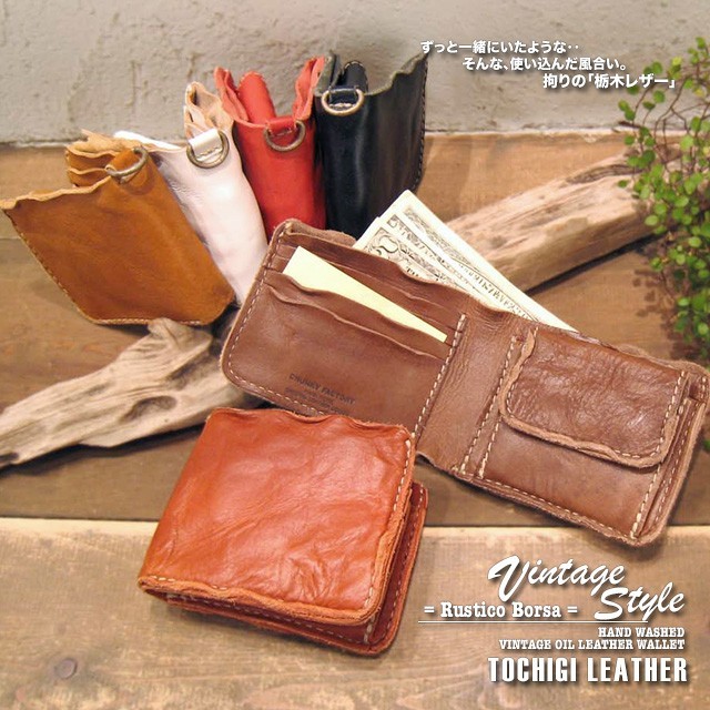 染色の段階からオイルを含ませた拘りの栃木レザーをさらに特殊なオイルに浸透させた後、水に浸し手作業で1つ1つ『揉み』『擦り』再度オイルを入れる加工をすることによりエッジ部分を歪ませ、よりリアルな使用感を実現したビンテージな雰囲気いっぱいのサイフです。