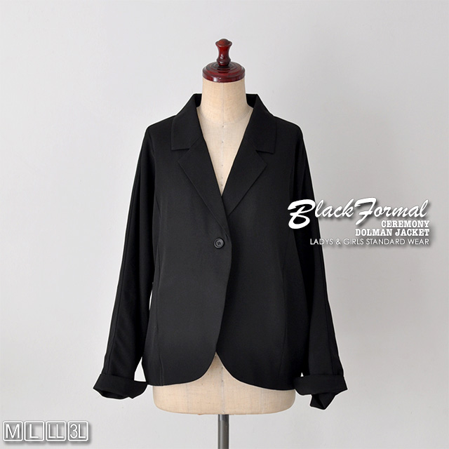 冠婚葬祭に慶弔で着回せるゆったりシルエットのドルマンラインのジャケット。