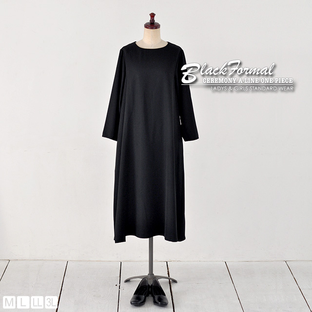 シンプルで着回し力抜群のブラックフォーマルのAラインロング丈ワンピースです。