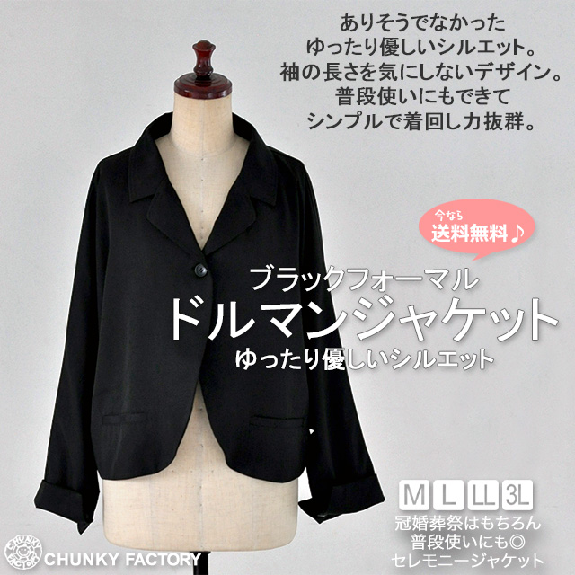 冠婚葬祭に慶弔で着回せるゆったりシルエットのドルマンラインのジャケット。