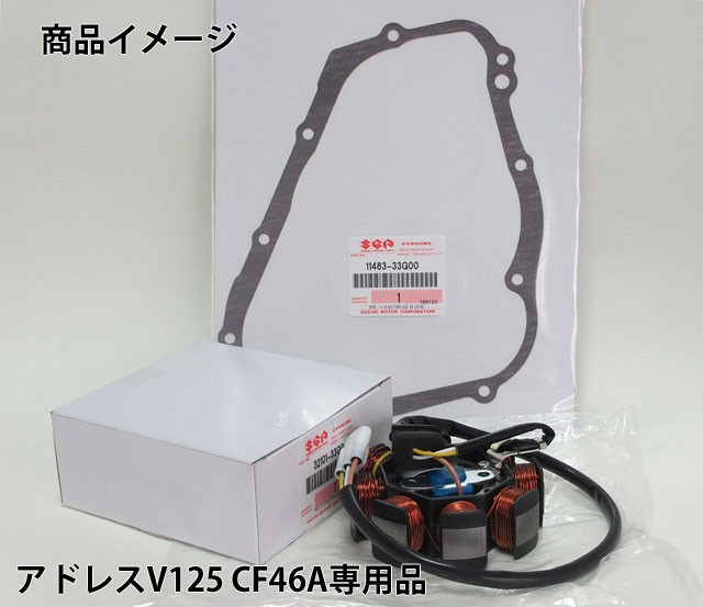 アドレスV125(CF46A/K7モデルまで)用純正ステータと右カバーガスケットのセット品です。