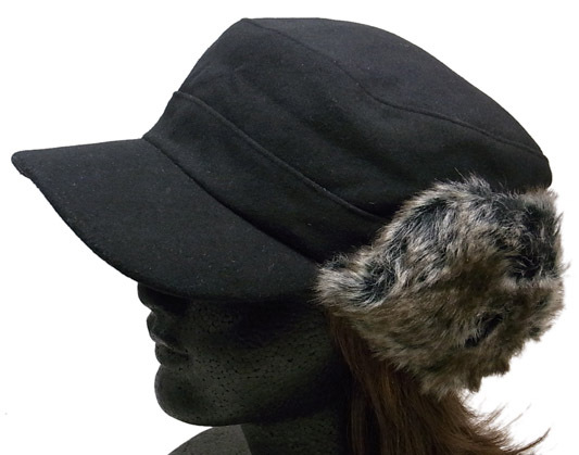・フェイクファーの耳あてが暖かいワークキャップです。耳あて部分を上げた状態のスタイルもお洒落です。