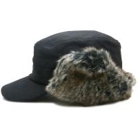 ワークキャップ ブラック ファー耳あて付 トラッパー トラッパーハット アビエイターハット エコファー 帽子