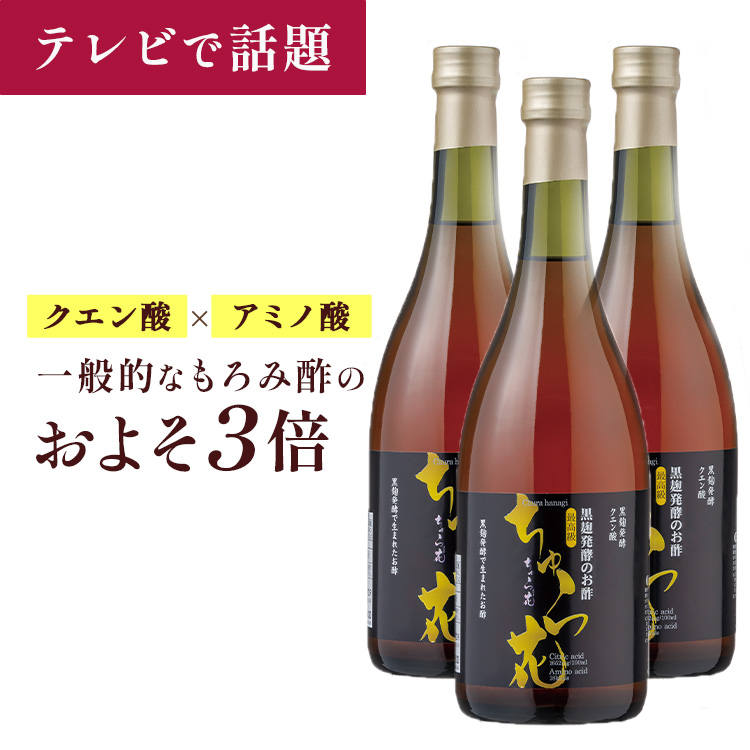 黒麹(くろこうじ)発酵 無添加 琉球もろみ酢 ちゅら花(はなぎ) 720ml 沖縄県産 3本セット