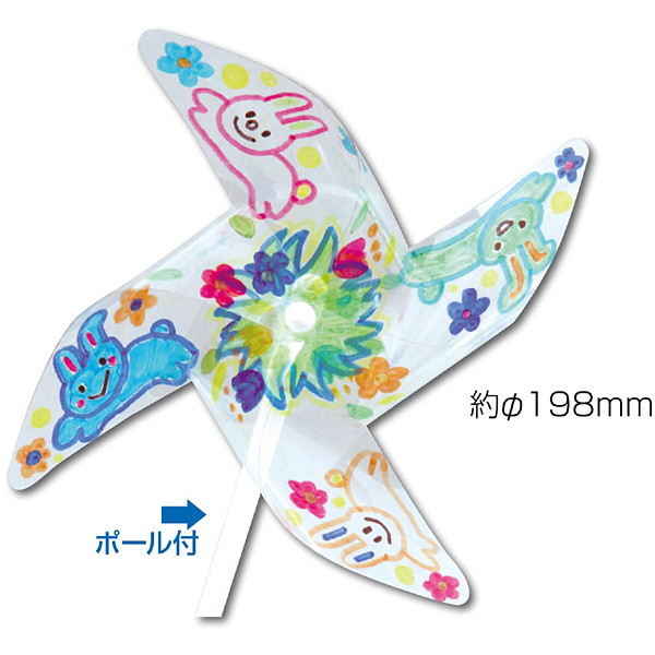 お絵かきクリア18cmミニかざぐるま/ 組立 工作 風車 かざぐるま 色塗り /メール便対応
