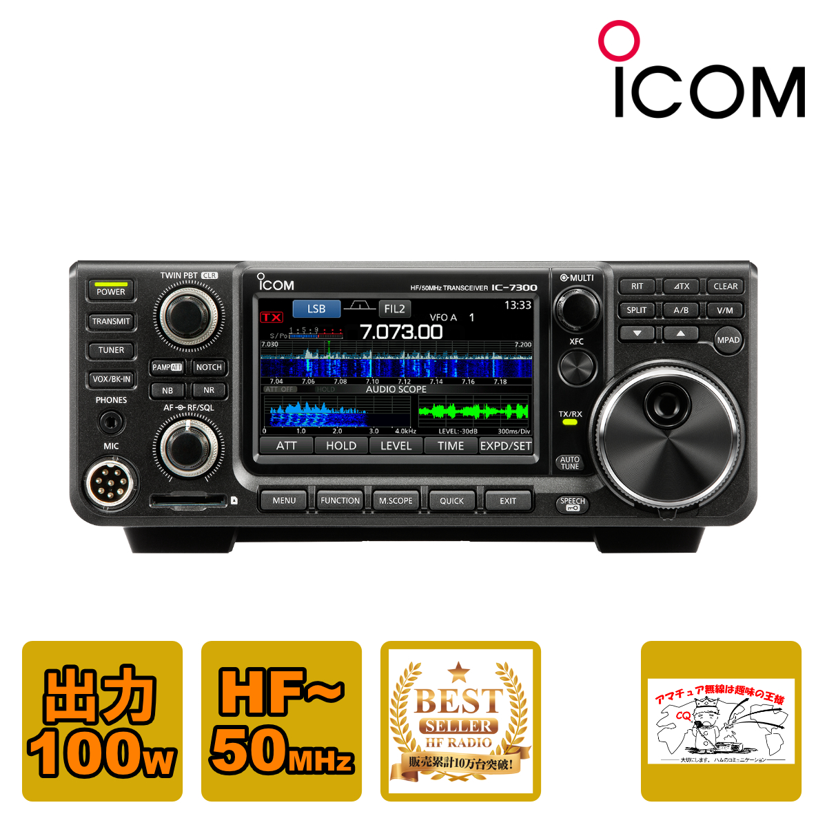 | 消費電流 | 受信時/0.9A (typ) 受信最大出力時/1.25A 送信時(100W時)/21.0A | |||||||||||||||||||||||||||||||