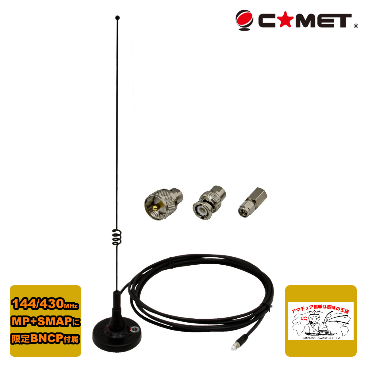 MA-721+BNCP限定セット コメット 144/430MHzマグネットベースアンテナ M型、SMA型、初回限定 BNCP型脱着コネクター付き