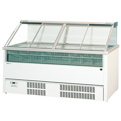 | 特長 | ●HFC冷媒(R448A)対応 ●DCインバータコンプレッサー搭載 ●DCファンモーター採用 ●冷気強制循環式 ●フロントガラス付き ●庫内バスケット採用(前後2列、2段積み) ●ドレン強制蒸発式(蒸発ヒーター温度制御) ●通信対応コントローラー搭載(遠隔監視対応) |