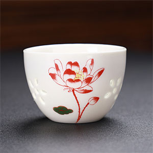 茶杯 透かし 赤 ( 中国茶器 中華 茶器 湯呑 ホタル )