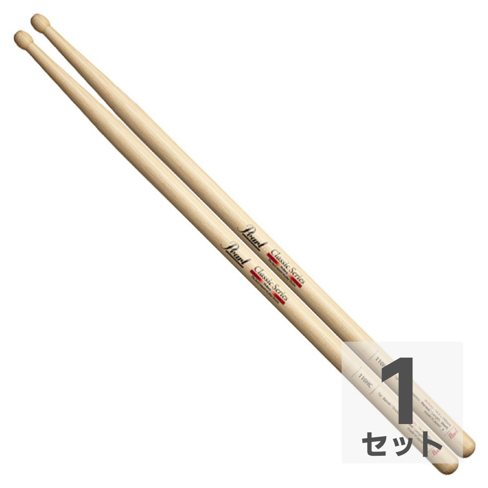 パール スティック 110HC ヒッコリー ドラムスティック Pearl。パール・ドラムスティック Classic Series110HC適度なしなりでスティックでは最もポピュラーなヒッコリー材を使用。多少短めながらパワーが出しやすく、トータルバランスが非常に優れている為、発売後常にトップセラーとなっている、まさにキングオブスティック。ヒッコリークリアラッカー仕上げ14.5×398mmTip:BarrelTaper:M1セットでの販売です。